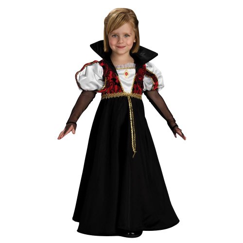 The Toddler Royal Vampira Costume gives your daughter a chance to dress as a classic horror vampire Includes a dress with a stand-up collar Royal Vampira Costume features a gothic style dress Black dress with blood red accents Dress has gold trim and stand up collar Toddler size 2 Rubies brings f Read More..