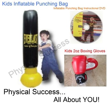 Kids Punching bag with 2oz Physical Success signature boxing gloves and an instructional DVDEverlast inflatable soft boxing punching bag comes with foot pump to keep the punching bag filled with air Add water to the bottom base so it keeps coming back for more When properly filled it weighs a Read More..