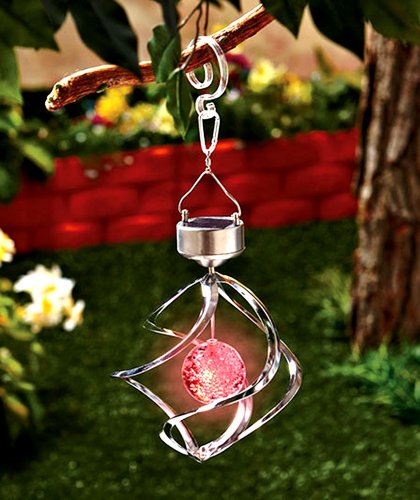 Add a delightful display of light and motion to your outdoors with a Solar Lighted Garden Spinner An LED inside the dangling orb changes colors for a stunning effect A silver tone spinner whirls around the ball when breezes blow The solar panel on the top provides the energy Its easy to hang by Read More..