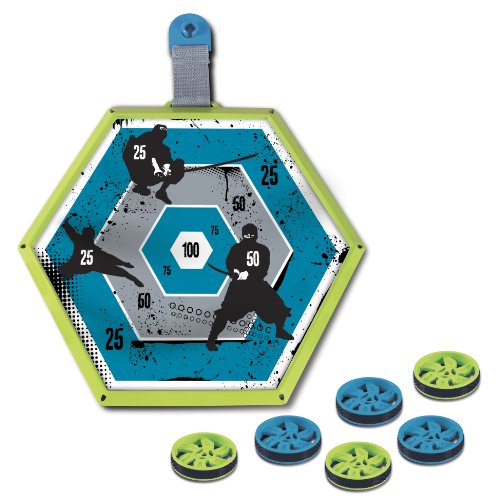 Show off your ninja throwing skills Throw the adhesive ninja star-shaped darts at the dart board and use your best aim to score the most points You can make the dart board swing to increase the challenge level Play it solo or with a friend Includes 6 Ninja darts and 1 dart board Aim throw and s Read More..